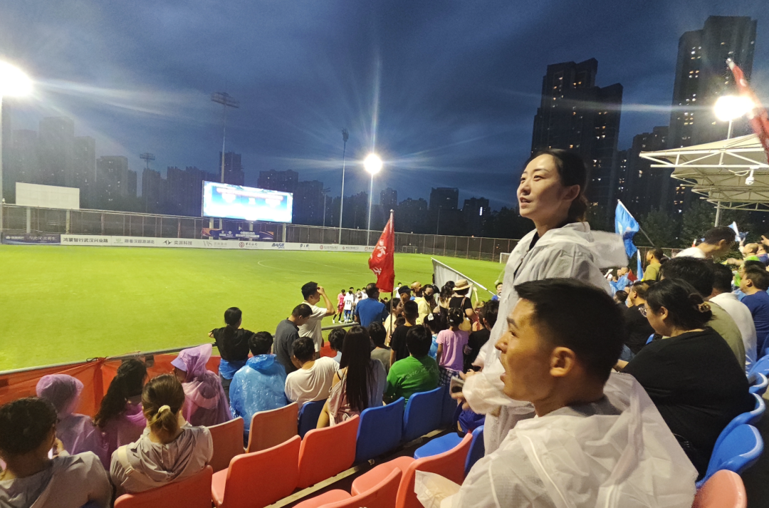 昨天雨势很大,但看球的球迷仍然很多,不仅武汉本地人喜爱足球,而且还有许多女孩子加油助威